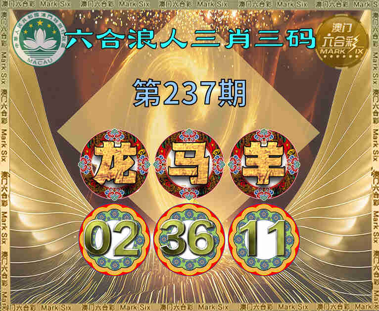 237期:《六合浪人》 💄三肖三码💄【马羊】【02.36.11】开:龙02