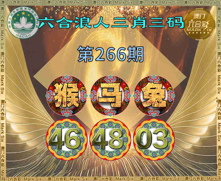 266期:《六合浪人》 💄三肖三码💄【猴马兔】【46.48.03】开:牛41