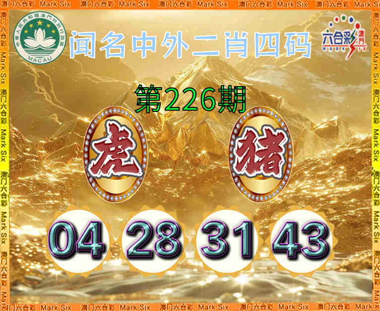 226期:『闻名中外』 🧣二肖四码🧣【虎】【04.28.31.43】开:猪31