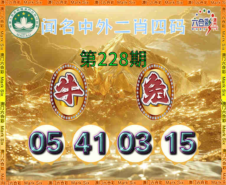 228期:『闻名中外』 🧣二肖四码🧣【牛】【05.41.03.15】开:兔15