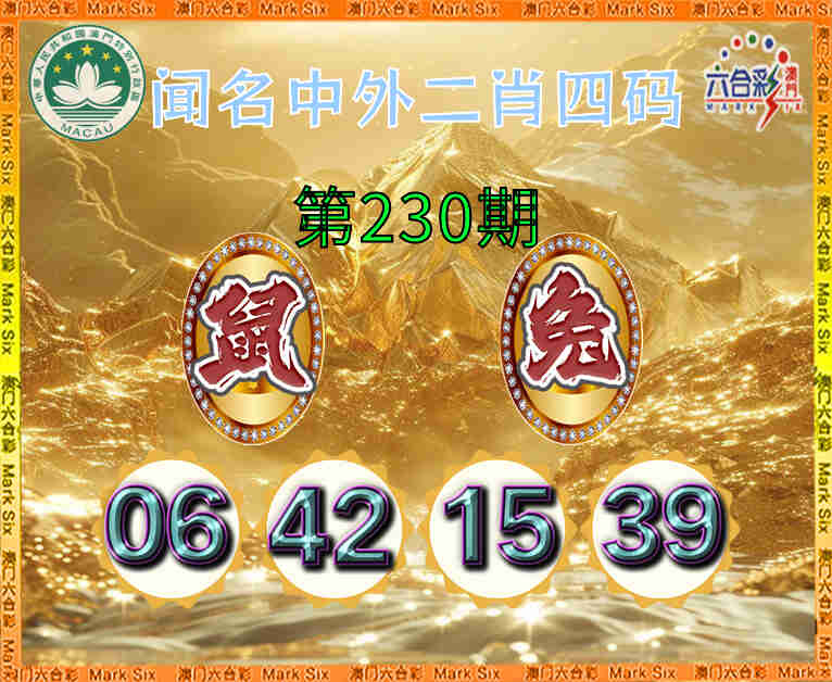 230期:『闻名中外』 🧣二肖四码🧣【鼠】【06.42.15.39】开:兔39