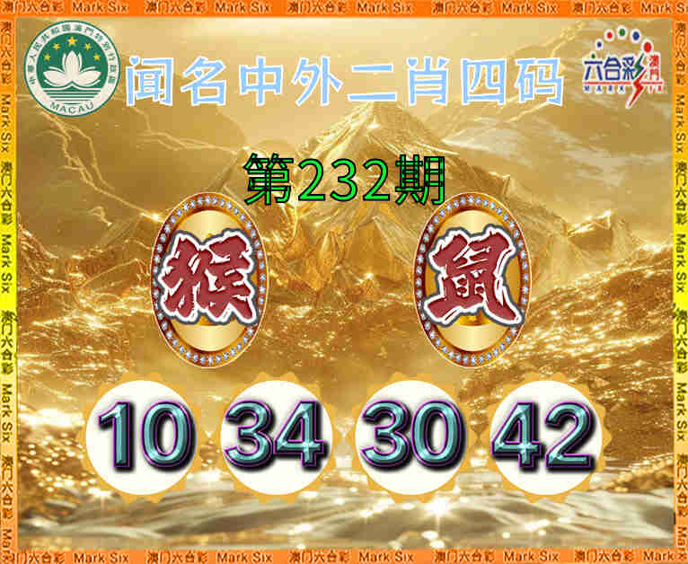 232期:『闻名中外』 🧣二肖四码🧣【猴】【10.34.30.42】开:鼠42
