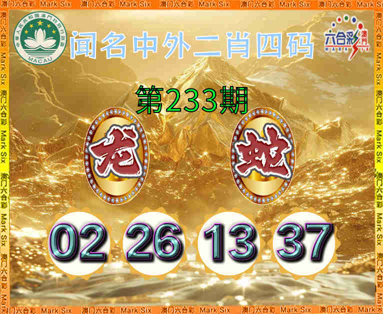 233期:『闻名中外』 🧣二肖四码🧣【龙】【02.26.13.37】开:蛇37