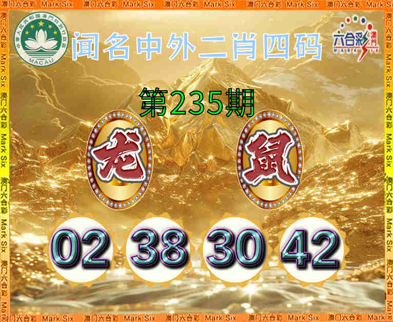 235期:『闻名中外』 🧣二肖四码🧣【龙】【02.38.30.42】开:鼠42