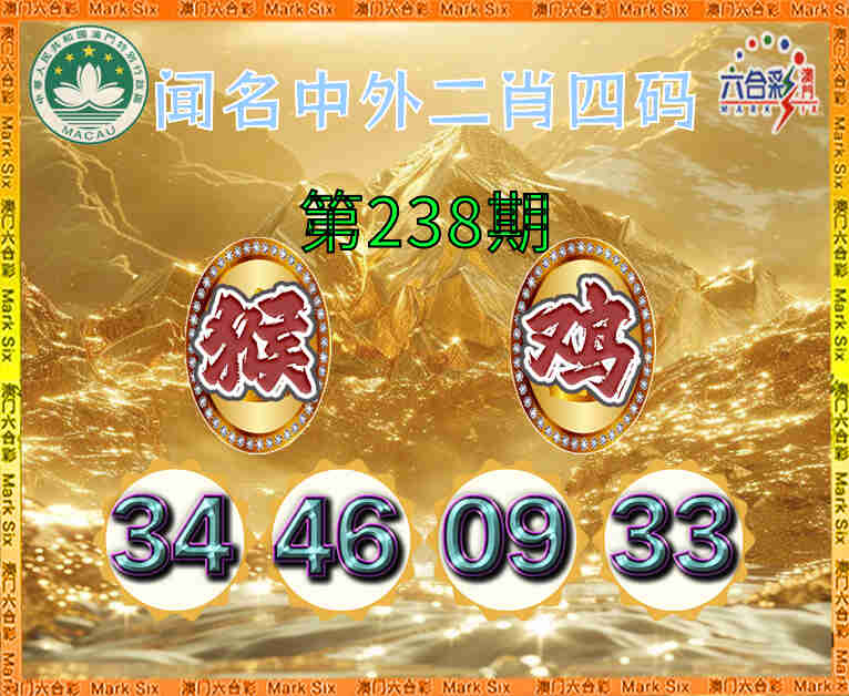238期:『闻名中外』 🧣二肖四码🧣【鸡】【34.46.09.33】开:猴46