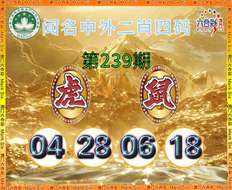 239期:『闻名中外』 🧣二肖四码🧣【鼠】【04.28.06.18】开:虎04