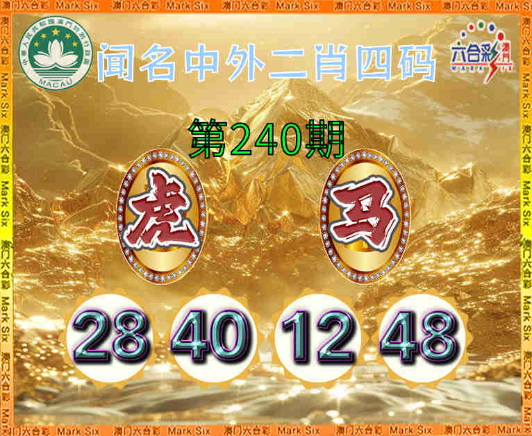 240期:『闻名中外』 🧣二肖四码🧣【马】【28.40.12.48】开:虎28