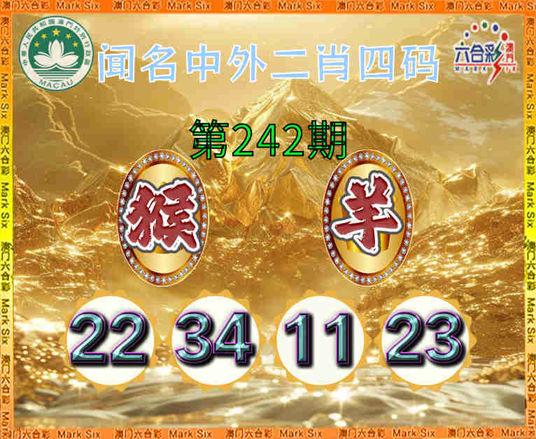 242期:『闻名中外』 🧣二肖四码🧣【羊】【22.34.11.23】开:猴34