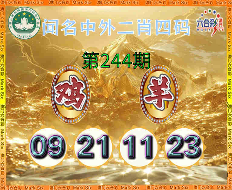 244期:『闻名中外』 🧣二肖四码🧣【鸡羊】【09.21.11.23】开:马24