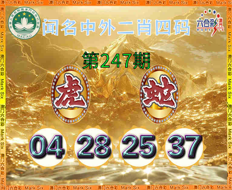 247期:『闻名中外』 🧣二肖四码🧣【虎】【04.28.25.37】开:蛇25