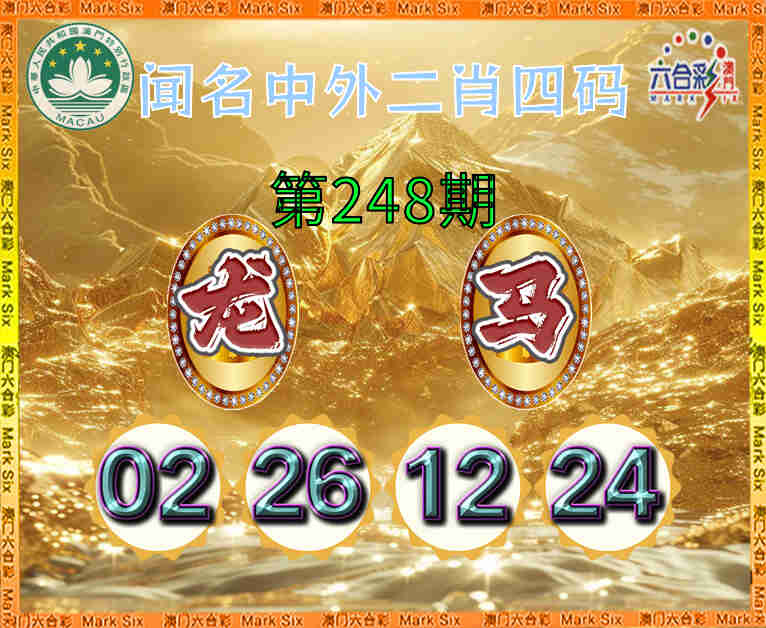 248期:『闻名中外』 🧣二肖四码🧣【龙】【02.26.12.24】开:马12