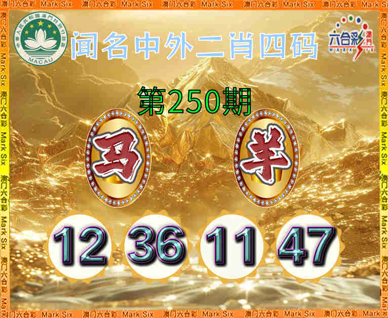 250期:『闻名中外』 🧣二肖四码🧣【羊】【12.36.11.47】开:马12