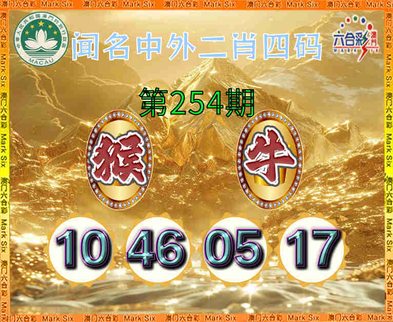 254期:『闻名中外』 🧣二肖四码🧣【猴】【10.46.05.17】开:牛17