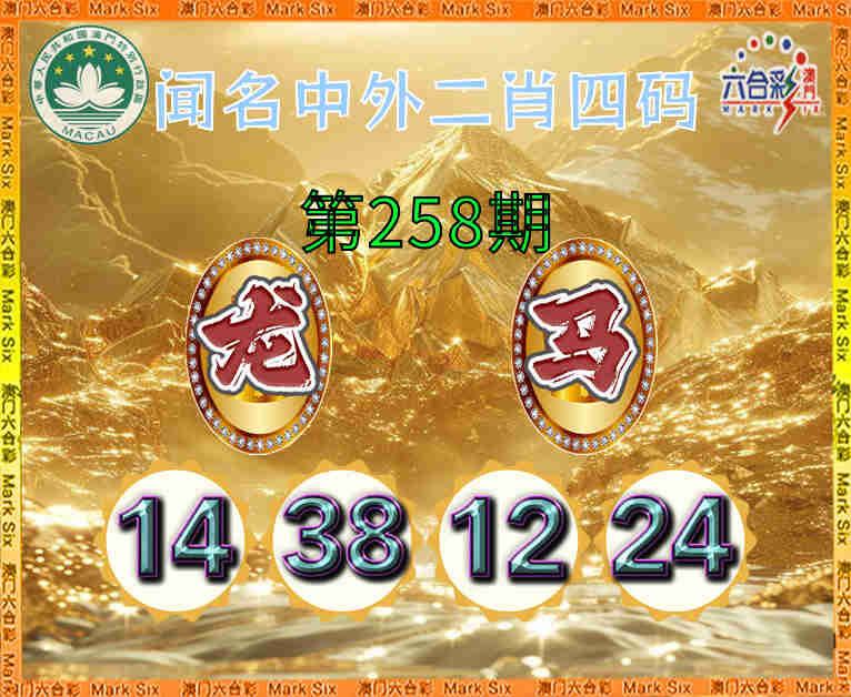258期:『闻名中外』 🧣二肖四码🧣【马】【14.38.12.24】开:龙38