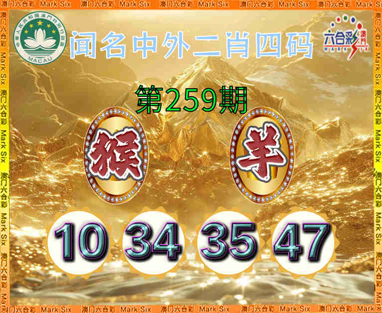 259期:『闻名中外』 🧣二肖四码🧣【猴】【10.34.35.47】开:羊47