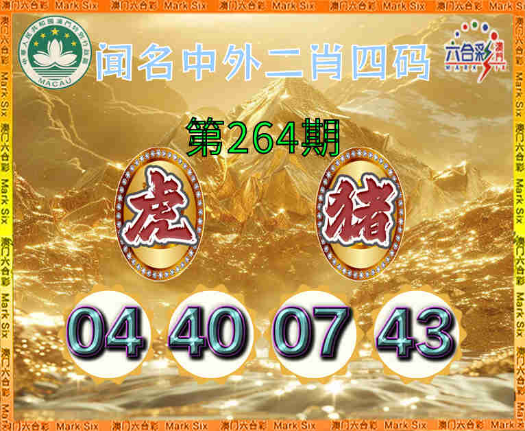 264期:『闻名中外』 🧣二肖四码🧣【虎】【04.40.07.43】开:猪43