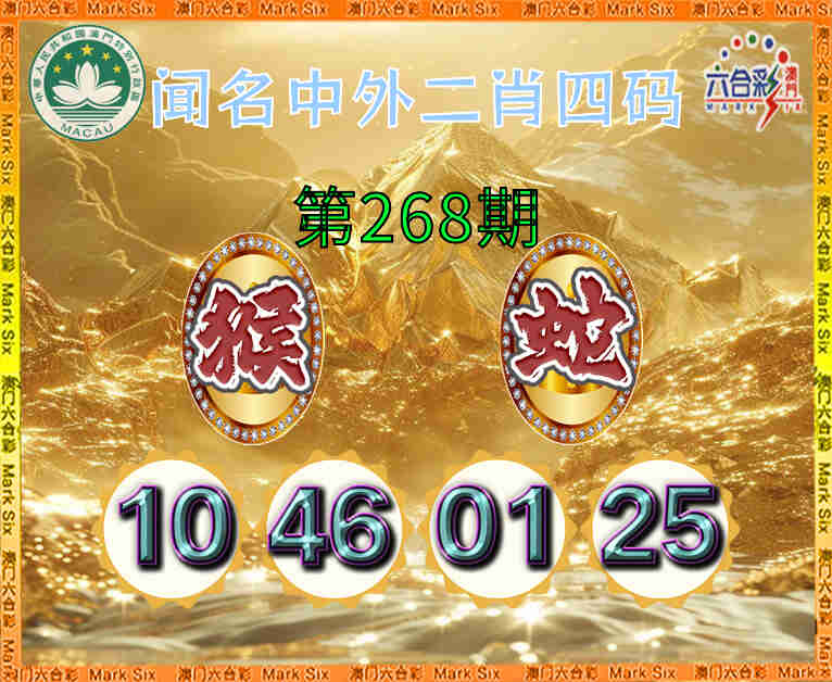 268期:『闻名中外』 🧣二肖四码🧣【蛇】【10.46.01.25】开:猴10