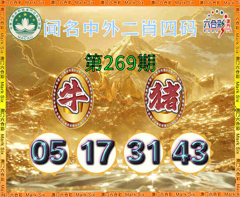 269期:『闻名中外』 🧣二肖四码🧣【牛】【05.17.31.43】开:猪31