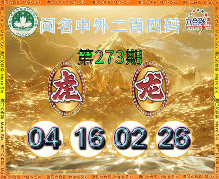 273期:『闻名中外』 🧣二肖四码🧣【龙】【04.16.02.26】开:虎04