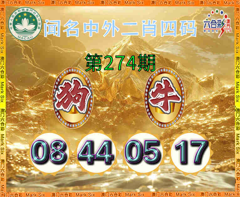 274期:『闻名中外』 🧣二肖四码🧣【牛】【08.44.05.17】开:狗44