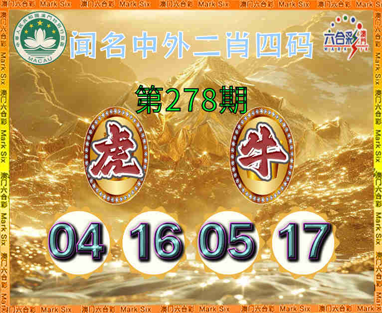 278期:『闻名中外』 🧣二肖四码🧣【牛】【04.16.05.17】开:虎28
