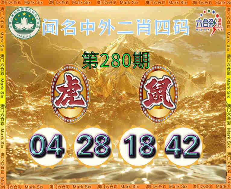 280期:『闻名中外』 🧣二肖四码🧣【虎】【04.28.18.42】开:鼠42